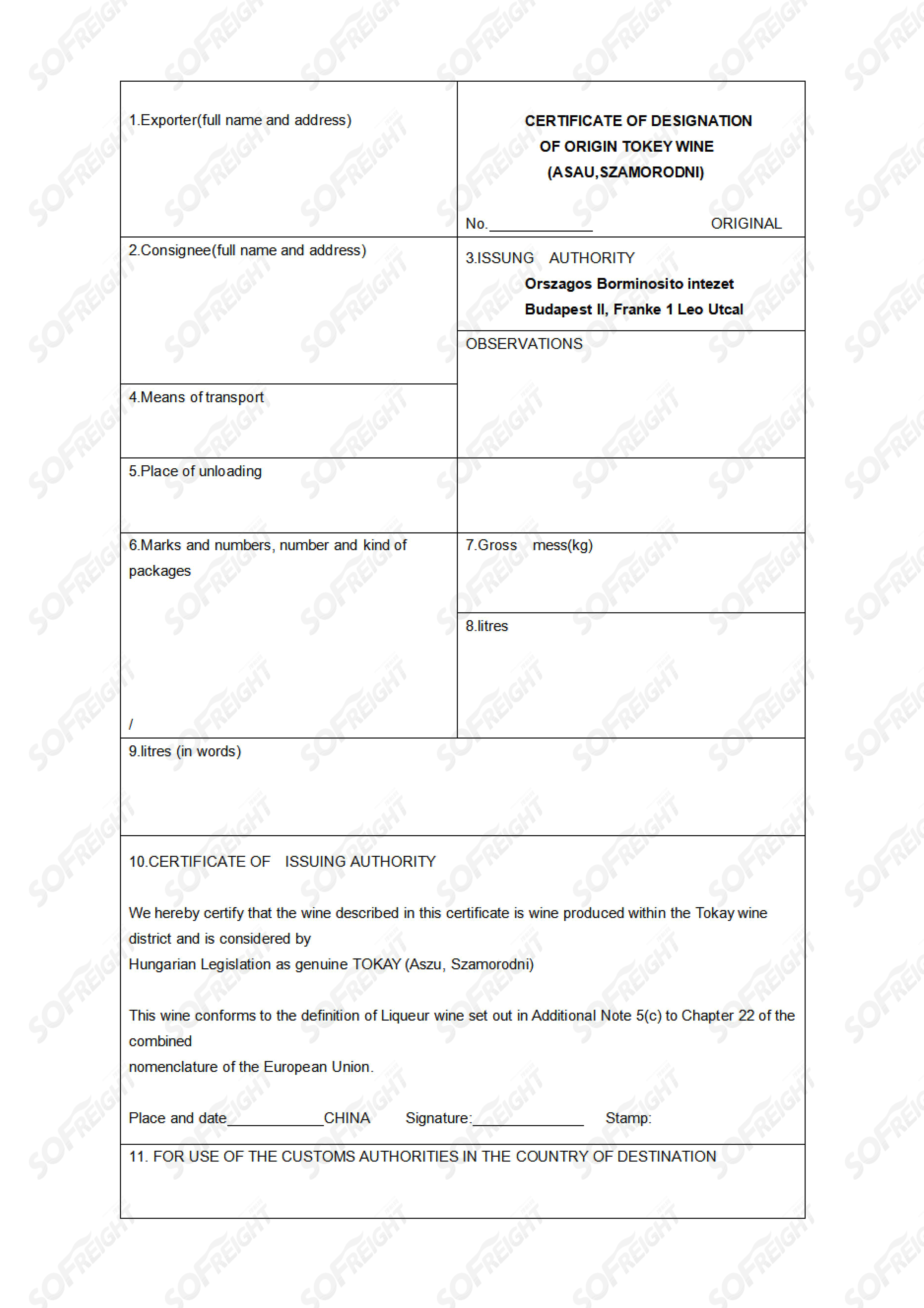 这个证书用于确认托考伊葡萄酒的原产地名称,即产品来自托考伊产区,符合托考伊产区的特定产地标准和质量要求。通过这个证书,托考伊葡萄酒的原产地名称得到保护,有助于提升产品的信誉和市场竞争力。