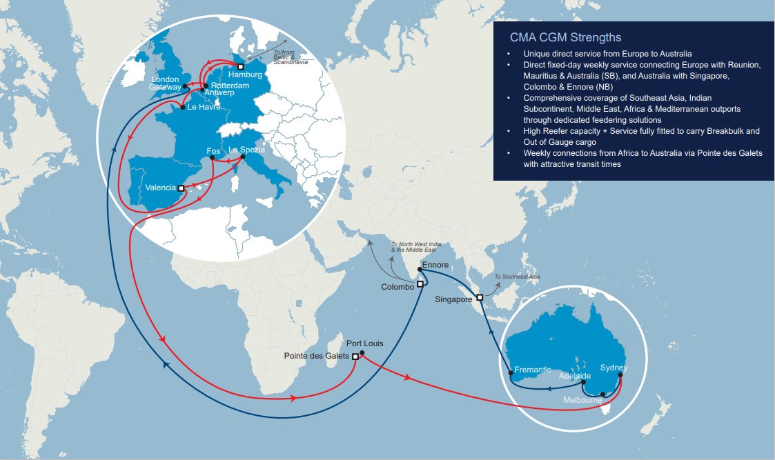 1月19日晚,达飞轮船官网发布公告称,其与地中海航运共同运营的NEMO服务避开红海航道南非好望角。该服务连接北欧、地中海、南亚、印度次大陆和澳大利亚。