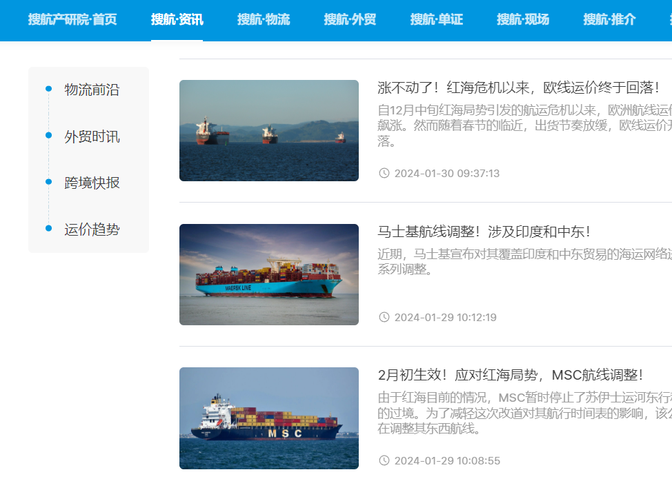 现在进入搜航产研院-搜航·资讯,还可以了解更多港口动态及航线调整信息!