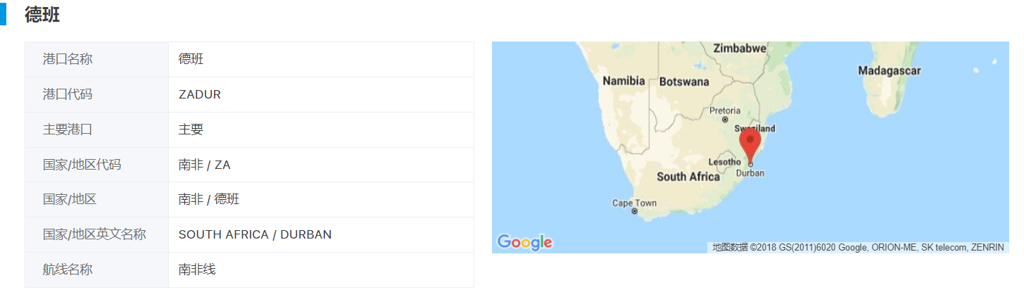 德班港位于南非东海岸,濒临印度洋的西南侧,是南非最大的集装箱港。始建于1824年,原名纳塔尔港,1835年改现名,港口所在的德班市是南非第三大城市。德班港处理着南非约60%的集装箱量/运输量,每年可以处理高达3140万吨的货物。