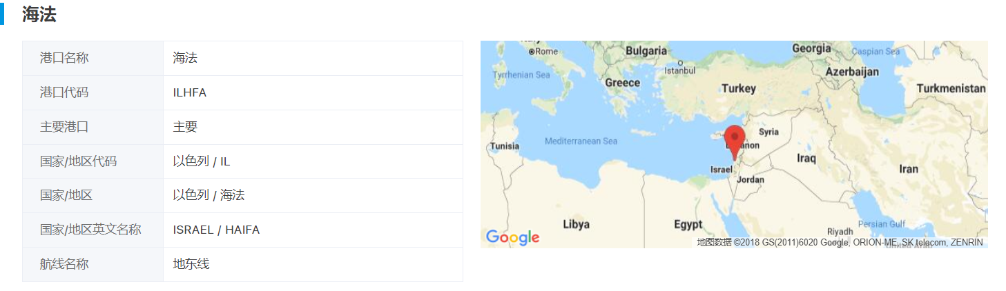 海法港是以色列最大港口,位于以色列西部沿海北端海法湾南岸进口处,濒临地中海的东侧。它是以色列北部的交通和工业中心,地中海沿岸的铁路枢纽。主要工业有炼油、造船、汽车装配、军火、化肥、橡胶制品、塑料、电缆、建材、水泥、纺织及食品等。由于以色列经济的繁荣,海法港的国际中转业务也随之上升。