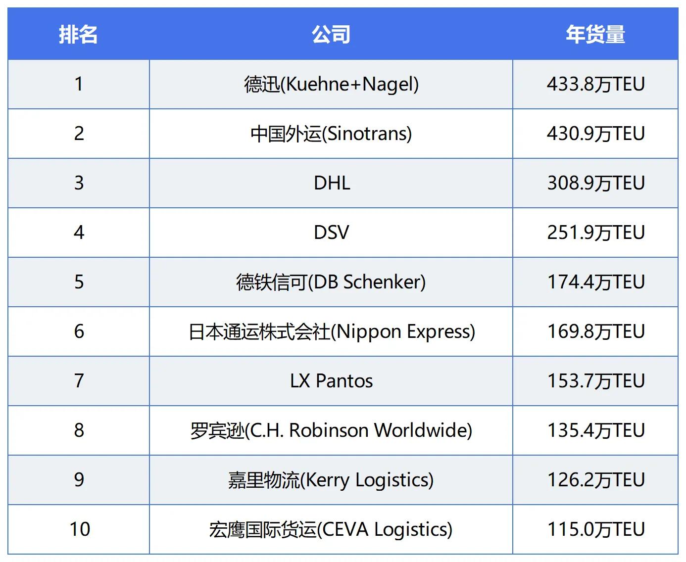 根据全球物流业权威杂志《Transport Topics》发布的2024年全球货代50强榜单,以业务量计算,DSV是全球第四大海运货代、第四大空运货代;德铁信可是全球第五大海运货代、第三大空运货代。DSV收购德铁信可后,将成为全球最大的货代企业!
