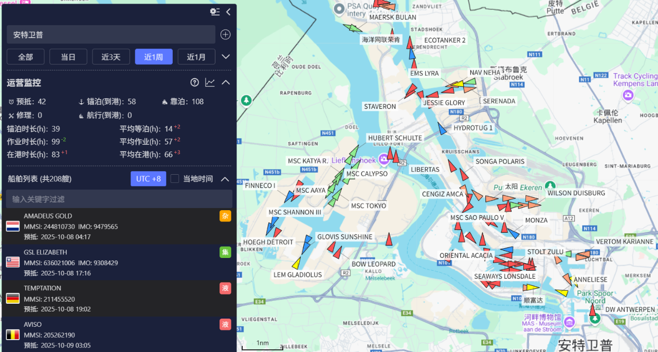 据港口方面数据,截至10月7日下午,滞港船舶总数已达70艘——其中54艘在北海等待引航(44艘驶往安特卫普,其余前往泽布吕赫及根特),另有15艘船舶在安特卫普等待离港。