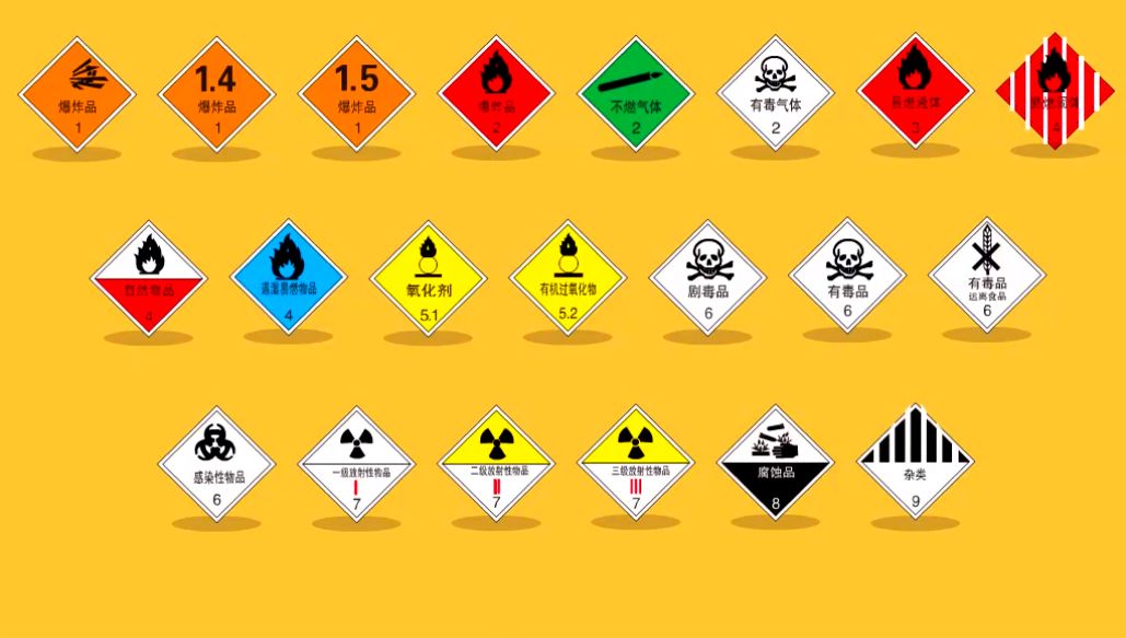 根据不同的性质危险品分为以下几种: