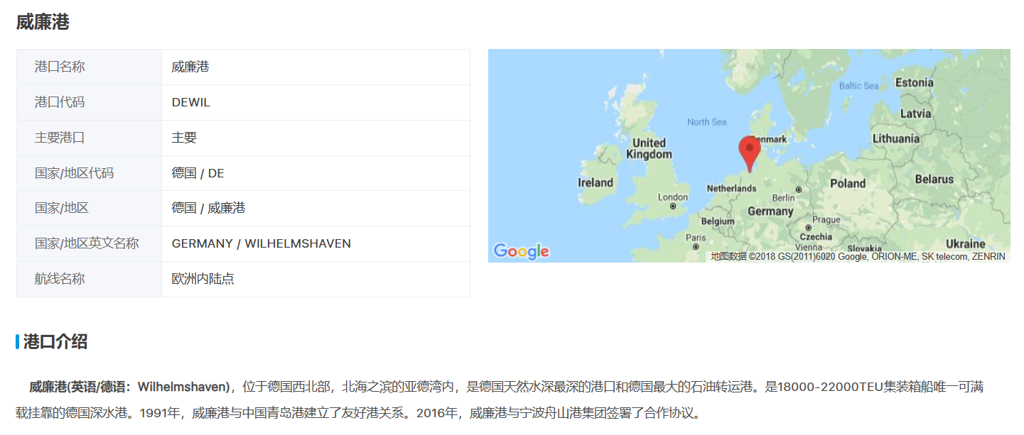 威廉港位于德国西北部,北海之滨的亚德湾内,往东距离汉堡港约100公里,往西距离荷兰鹿特丹港约300公里。除了新建的集装箱港区,威廉港还是德国传统的能源、化工和军事港口。威廉港地理位置靠近公海和国际航道,进港航道所在的亚德湾水域宽阔,进出港条件十分优越。
