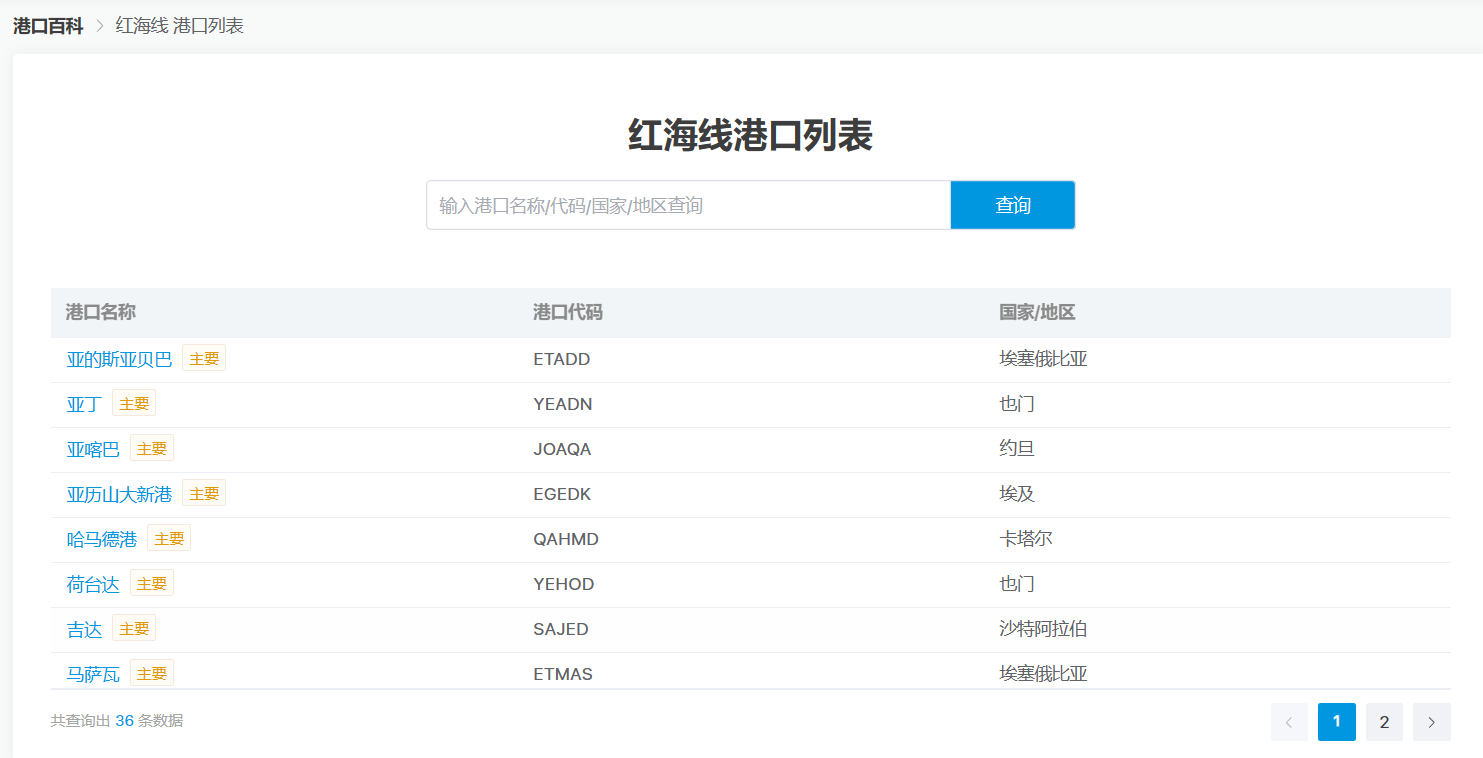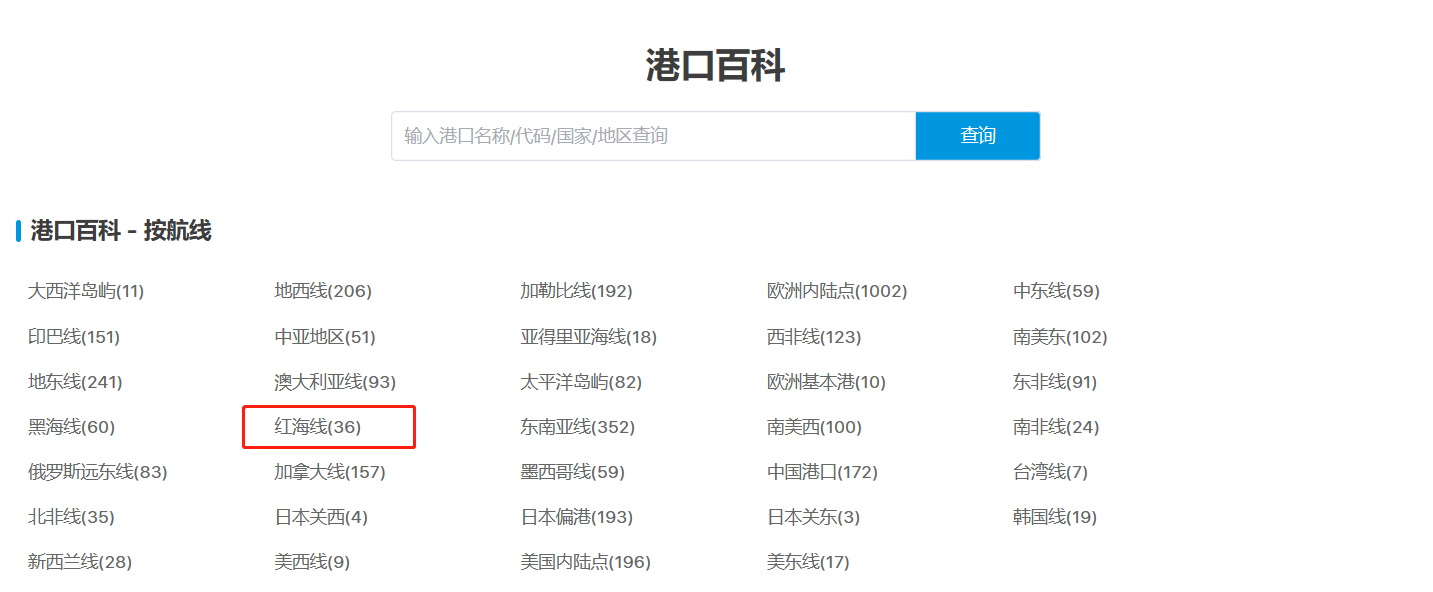 航宝上述为大家列举的都是红海地区的主要港口,当然,这只是一部分,还有许多航宝没有提到的港口,想了解更多的朋友可以直接通过搜航网的【港口百科】进行查询哦。搜航网的港口百科功能支持按航线查询,点击“红海线”,即可获取更多红海航线的港口信息,希望对你有所帮助!