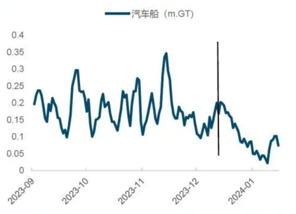 红海局势对汽车船的扰动 数据来源:克拉克森研究