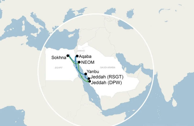 新航线被命名为NRX(North Red Sea Express),将由两艘较小的集装箱船运营提供每周服务,连接沙特阿拉伯、约旦和埃及,以此来扩大红海北部的物流能力。