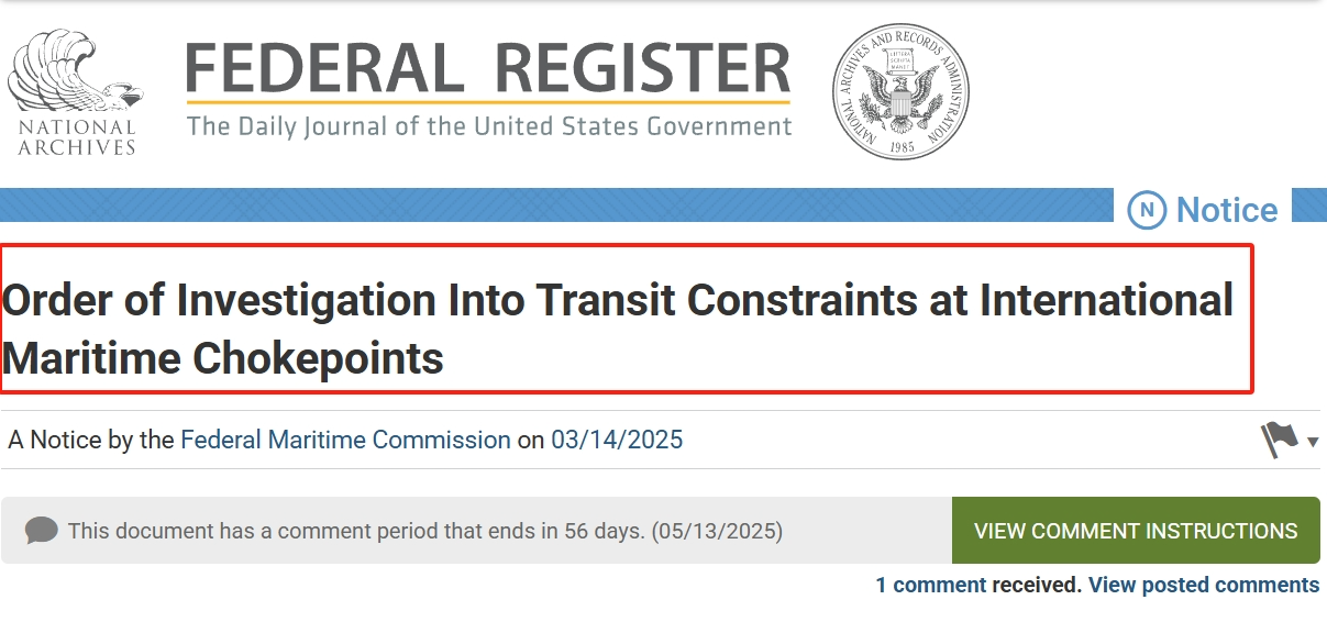 近日,美国联邦海事委员会(FMC)发布了一则公报称,将对国际海上交通要道进行调查。