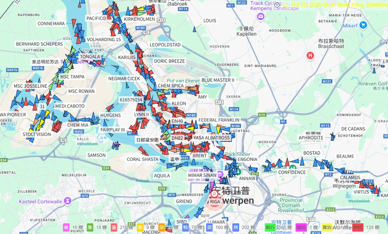 据搜航网战略合作伙伴平台——船视宝的港口流量分析显示,鹿特丹港船舶平均等泊时间达12小时。