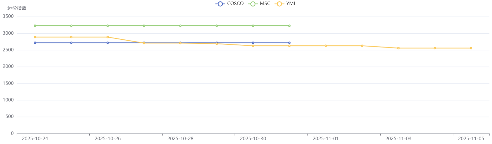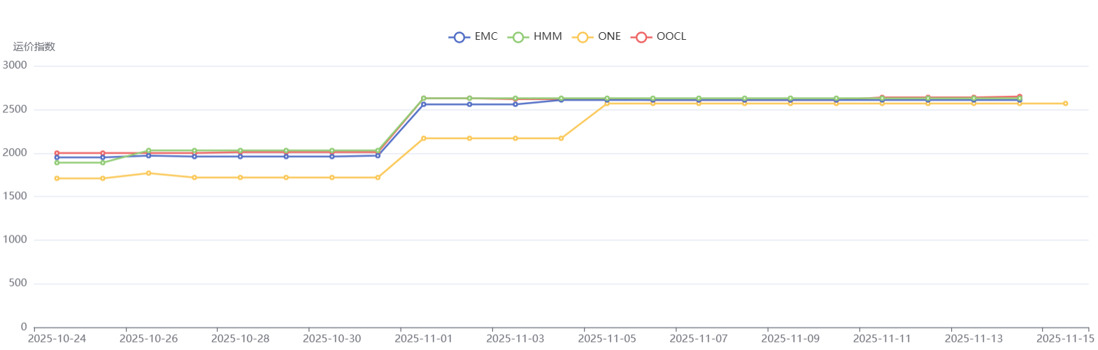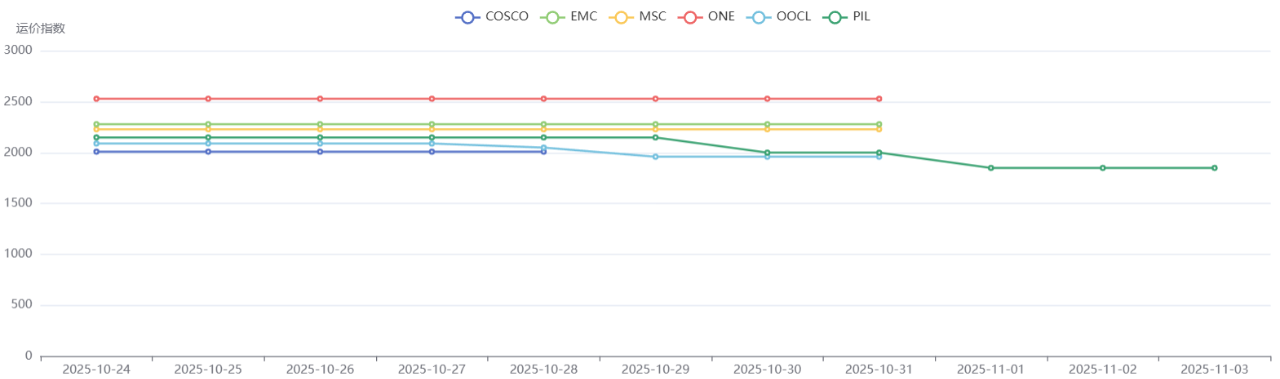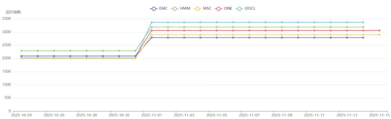 预计,11月各船东将拉高运价,11月下旬停航较多,运价短期内维稳高位。