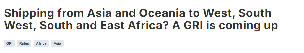 具体包括:从亚洲和大洋洲运往西非、西南非、南非和东非的20英尺和40英尺干货集装箱及冷藏集装箱(包括高箱设备)的货物,每集装箱上涨500美元。